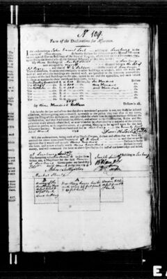 I do hereby declare and affirm that the above mentioned property is not, nor shall be insured elsewhere, without giving notice thereof, agreeably to the policy that may issue in my name, upon the filing of this declaration, and provided the whole sum do not exceed four-fifths of the verified value, and that I will abide by, observe, and adhere to the Constitution, Rules, and regulations as are already established, or may hereafter be established by a majority of the insured, present in person, or by representatives, at a general Meeting to be agreed upon for the said Assurance Society. Witness my hand and seal at [signing location] the [day number spelled out] day of [month] 1796.