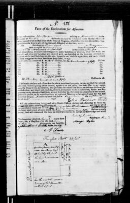 Fire insurance policy from the Mutual Assurance Society of Virginia (MAS) scanned from microfilm. MAS began issuing policies in 1796 and UMW holds microfilm copies of policies created from 1796 to 1867. The Library of Virginia holds the original polices. Computer-generated PDF transcripts are available for download below, listed under Additional Files.