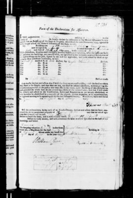 This sub-collection contains insurance policies from volume four of the Mutual Assurance Society Policies digital collection. Each item includes a JPEG scanned from microfilm and an automatically generated transcript. To read more about the transcript creation process, visit our transcript documentation. To locate a specific policy based on criteria like policyholder name, address, structure type, etc., we recommend using the UMW Center for Historic Preservation's electronic index. The index results will provide the reel and volume that contain a specific policy.