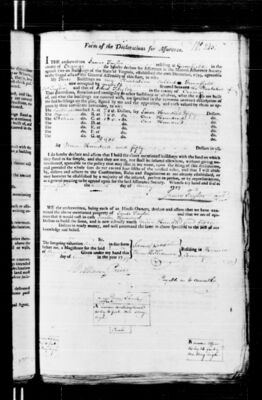 I do hereby declare and affirm that the above mentioned property is not, nor shall be insured elsewhere, without giving notice thereof, agreeably to the policy that may issue in my name, upon the filing of this declaration, and provided the whole sum do not exceed four-fifths of the verified value, and that I will abide by, observe, and adhere to the Constitution, Rules, and regulations as are already established, or may hereafter be established by a majority of the insured, present in person, or by representatives, at a general Meeting to be agreed upon for the said Assurance Society. Witness my hand and seal at [signing location] the [day number spelled out] day of [month] 1799.