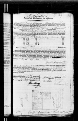 [I or We] the underwritten David Simons residing at [home city] in the county of [home county] do hereby declare for Assurance in the Mutual Assurance Society against Fire on Buildings of the State of Virginia. Established 26th December. 1795, agreeable to the several acts of the General Assembly of this state, to wit: