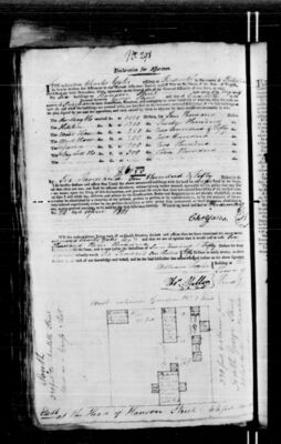 My seven Buildings on S Side Hanover St at Fredericksburg now occupied by [tenant first and last name] situated between the [adjacent property owner] and that of [adjacent property owner] in the county of Spotsylvania. Their dimensions, situation and contiguity to other buildings or wharves, what the walls are built of, and what the buildings are covered with, are specified in the hereunto annexed description of the said Buildings on the plat, signed by me and the appraisers, and each valued by them as appears by their certificate here under, to wit: