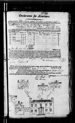 Fire insurance policy from the Mutual Assurance Society of Virginia (MAS) scanned from microfilm. MAS began issuing policies in 1796 and UMW holds microfilm copies of policies created from 1796 to 1867. The Library of Virginia holds the original polices. Computer-generated PDF transcripts are available for download below, listed under Additional Files.