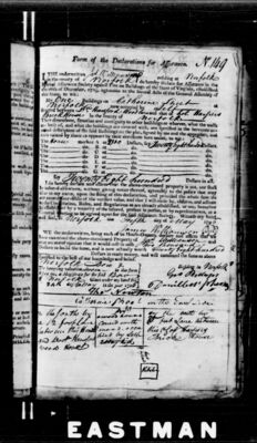 I do hereby declare and affirm that the above mentioned property is not, nor shall be insured elsewhere, without giving notice thereof, agreeably to the policy that may issue in my name, upon the filing of this declaration, and provided the whole sum do not exceed four-fifths of the verified value, and that I will abide by, observe, and adhere to the Constitution, Rules, and regulations as are already established, or may hereafter be established by a majority of the insured, present in person, or by representatives, at a general Meeting to be agreed upon for the said Assurance Society. Witness my hand and seal at [signing location] the [day number spelled out] day of [month] 1796.