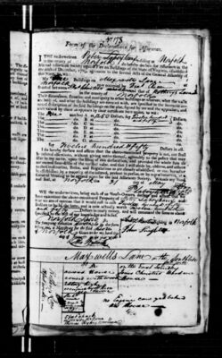 Fire insurance policy from the Mutual Assurance Society of Virginia (MAS) scanned from microfilm. MAS began issuing policies in 1796 and UMW holds microfilm copies of policies created from 1796 to 1867. The Library of Virginia holds the original polices. Computer-generated PDF transcripts are available for download below, listed under Additional Files.