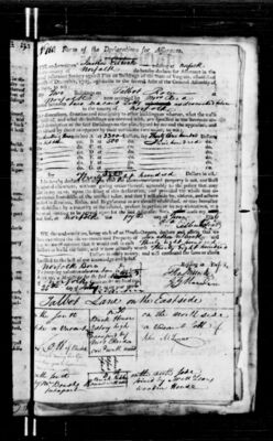 My two Buildings on E Side Talbot Row at Norfolk now occupied by [tenant first and last name] situated between the [adjacent property owner] and that of [adjacent property owner] in the county of Norfolk. Their dimensions, situation and contiguity to other buildings or wharves, what the walls are built of, and what the buildings are covered with, are specified in the hereunto annexed description of the said Buildings on the plat, signed by me and the appraisers, and each valued by them as appears by their certificate here under, to wit: