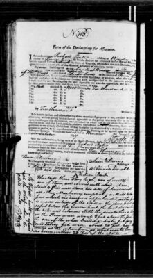 I do hereby declare and affirm that the above mentioned property is not, nor shall be insured elsewhere, without giving notice thereof, agreeably to the policy that may issue in my name, upon the filing of this declaration, and provided the whole sum do not exceed four-fifths of the verified value, and that I will abide by, observe, and adhere to the Constitution, Rules, and regulations as are already established, or may hereafter be established by a majority of the insured, present in person, or by representatives, at a general Meeting to be agreed upon for the said Assurance Society. Witness my hand and seal at [signing location] the [day number spelled out] day of [month] 1796.