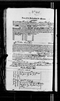I do hereby declare and affirm that the above mentioned property is not, nor shall be insured elsewhere, without giving notice thereof, agreeably to the policy that may issue in my name, upon the filing of this declaration, and provided the whole sum do not exceed four-fifths of the verified value, and that I will abide by, observe, and adhere to the Constitution, Rules, and regulations as are already established, or may hereafter be established by a majority of the insured, present in person, or by representatives, at a general Meeting to be agreed upon for the said Assurance Society. Witness my hand and seal at [signing location] the [day number spelled out] day of [month] 1797.