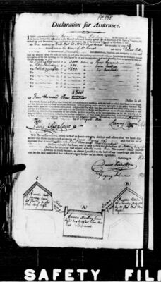 Fire insurance policy from the Mutual Assurance Society of Virginia (MAS) scanned from microfilm. MAS began issuing policies in 1796 and UMW holds microfilm copies of policies created from 1796 to 1867. The Library of Virginia holds the original polices. Computer-generated PDF transcripts are available for download below, listed under Additional Files.