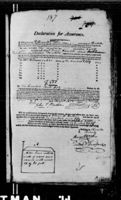 This sub-collection contains insurance policies from volume eleven of the Mutual Assurance Society Policies digital collection. Each item includes a JPEG scanned from microfilm and an automatically generated transcript. To read more about the transcript creation process, visit our transcript documentation. To locate a specific policy based on criteria like policyholder name, address, structure type, etc., we recommend using the UMW Center for Historic Preservation's electronic index. The index results will provide the reel and volume that contain a specific policy.