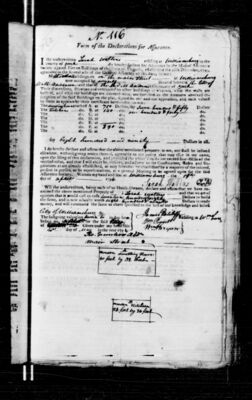 I do hereby declare and affirm that the above mentioned property is not, nor shall be insured elsewhere, without giving notice thereof, agreeably to the policy that may issue in my name, upon the filing of this declaration, and provided the whole sum do not exceed four-fifths of the verified value, and that I will abide by, observe, and adhere to the Constitution, Rules, and regulations as are already established, or may hereafter be established by a majority of the insured, present in person, or by representatives, at a general Meeting to be agreed upon for the said Assurance Society. Witness my hand and seal at [signing location] the [day number spelled out] day of [month] 1796.