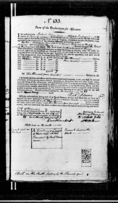 My two Buildings on Church Hill at Richmond now occupied by [tenant first and last name] situated between the [adjacent property owner] and that of [adjacent property owner] in the county of Henrico. Their dimensions, situation and contiguity to other buildings or wharves, what the walls are built of, and what the buildings are covered with, are specified in the hereunto annexed description of the said Buildings on the plat, signed by me and the appraisers, and each valued by them as appears by their certificate here under, to wit: