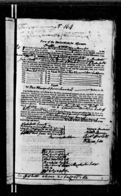 I do hereby declare and affirm that the above mentioned property is not, nor shall be insured elsewhere, without giving notice thereof, agreeably to the policy that may issue in my name, upon the filing of this declaration, and provided the whole sum do not exceed four-fifths of the verified value, and that I will abide by, observe, and adhere to the Constitution, Rules, and regulations as are already established, or may hereafter be established by a majority of the insured, present in person, or by representatives, at a general Meeting to be agreed upon for the said Assurance Society. Witness my hand and seal at [signing location] the [day number spelled out] day of [month] 1796.