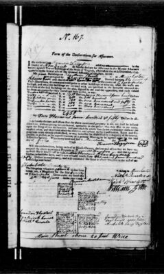Fire insurance policy from the Mutual Assurance Society of Virginia (MAS) scanned from microfilm. MAS began issuing policies in 1796 and UMW holds microfilm copies of policies created from 1796 to 1867. The Library of Virginia holds the original polices. Computer-generated PDF transcripts are available for download below, listed under Additional Files.
