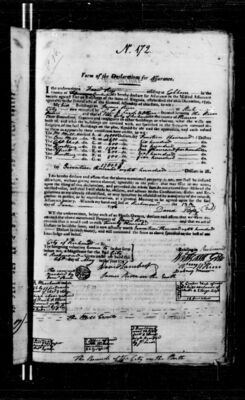 I do hereby declare and affirm that the above mentioned property is not, nor shall be insured elsewhere, without giving notice thereof, agreeably to the policy that may issue in my name, upon the filing of this declaration, and provided the whole sum do not exceed four-fifths of the verified value, and that I will abide by, observe, and adhere to the Constitution, Rules, and regulations as are already established, or may hereafter be established by a majority of the insured, present in person, or by representatives, at a general Meeting to be agreed upon for the said Assurance Society. Witness my hand and seal at [signing location] the [day number spelled out] day of [month] 1796.