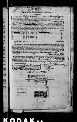 Fire insurance policy from the Mutual Assurance Society of Virginia (MAS) scanned from microfilm. MAS began issuing policies in 1796 and UMW holds microfilm copies of policies created from 1796 to 1867. The Library of Virginia holds the original polices. Computer-generated PDF transcripts are available for download below, listed under Additional Files.