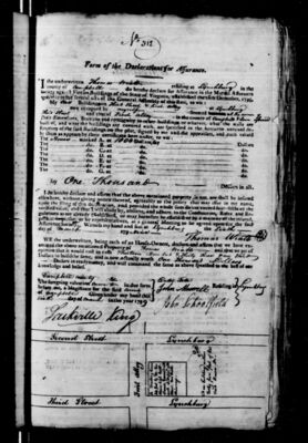 I the underwritten Thomas Wiatt residing at [home city] in the County of [home county] do hereby declare for Assurance in the Mutual Assurance Society against Fire on Buildings of the State of Virginia. Established 26th December, 1795, agreeable to the several acts of the General Assembly of this state, to wit: