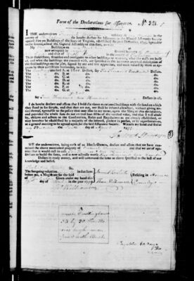 WE the underwritten, being each of us House-Owners, declare and affirm that we have examined the above mentioned Property of Frederick Woodson and that we are of opinion that it would cost in cash [$ amount in words] Dollars to build the same, and is now actually worth [total $ amount in words] Dollars in ready money, and will command the same as above specified to the best of our knowledge and belief.