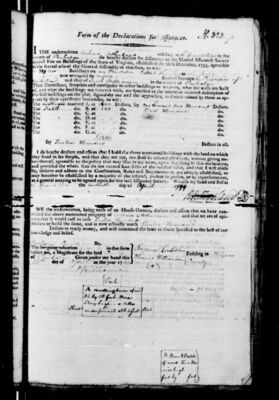 I do hereby declare and affirm that the above mentioned property is not, nor shall be insured elsewhere, without giving notice thereof, agreeably to the policy that may issue in my name, upon the filing of this declaration, and provided the whole sum do not exceed four-fifths of the verified value, and that I will abide by, observe, and adhere to the Constitution, Rules, and Regulations as are already established, or may hereafter be established by a majority of the insured, present in person, or by representatives, at a general Meeting to be agreed upon for the said Assurance Society. Witness my hand and seal at [signing location] the [day number spelled out] day of [month] 1799