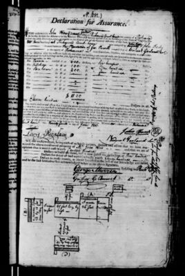 Fire insurance policy from the Mutual Assurance Society of Virginia (MAS) scanned from microfilm. MAS began issuing policies in 1796 and UMW holds microfilm copies of policies created from 1796 to 1867. The Library of Virginia holds the original polices. Computer-generated PDF transcripts are available for download below, listed under Additional Files.