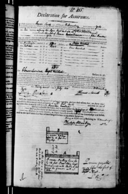 I do hereby declare and affirm that the above mentioned property is not, nor shall be insured elsewhere, without giving notice thereof, agreeably to the policy that may issue in my name, upon the filing of this declaration, and provided the whole sum do not exceed four-fifths of the verified value, and that I will abide by, observe, and adhere to the Constitution, Rules, and Regulations as are already established, or may hereafter be established by a majority of the insured, present in person, or by representatives, at a general Meeting to be agreed upon for the said Assurance Society. Witness my hand and seal at [signing location] the [day number spelled out] day of [month] 1801