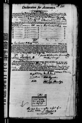 Fire insurance policy from the Mutual Assurance Society of Virginia (MAS) scanned from microfilm. MAS began issuing policies in 1796 and UMW holds microfilm copies of policies created from 1796 to 1867. The Library of Virginia holds the original polices. Computer-generated PDF transcripts are available for download below, listed under Additional Files.