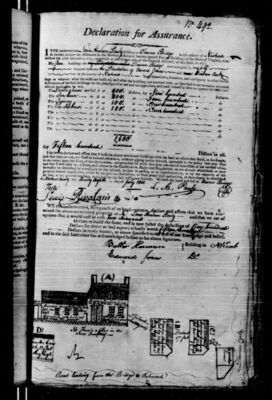 Fire insurance policy from the Mutual Assurance Society of Virginia (MAS) scanned from microfilm. MAS began issuing policies in 1796 and UMW holds microfilm copies of policies created from 1796 to 1867. The Library of Virginia holds the original polices. Computer-generated PDF transcripts are available for download below, listed under Additional Files.