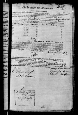 I do hereby declare and affirm that the above mentioned property is not, nor shall be insured elsewhere, without giving notice thereof, agreeably to the policy that may issue in my name, upon the filing of this declaration, and provided the whole sum do not exceed four-fifths of the verified value, and that I will abide by, observe, and adhere to the Constitution, Rules, and Regulations as are already established, or may hereafter be established by a majority of the insured, present in person, or by representatives, at a general Meeting to be agreed upon for the said Assurance Society. Witness my hand and seal at [signing location] the [day number spelled out] day of [month] 1801