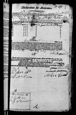 I do hereby declare and affirm that the above mentioned property is not, nor shall be insured elsewhere, without giving notice thereof, agreeably to the policy that may issue in my name, upon the filing of this declaration, and provided the whole sum do not exceed four-fifths of the verified value, and that I will abide by, observe, and adhere to the Constitution, Rules, and Regulations as are already established, or may hereafter be established by a majority of the insured, present in person, or by representatives, at a general Meeting to be agreed upon for the said Assurance Society. Witness my hand and seal at [signing location] the [day number spelled out] day of [month] 1801