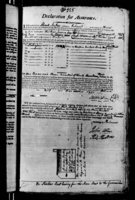 Fire insurance policy from the Mutual Assurance Society of Virginia (MAS) scanned from microfilm. MAS began issuing policies in 1796 and UMW holds microfilm copies of policies created from 1796 to 1867. The Library of Virginia holds the original polices. Computer-generated PDF transcripts are available for download below, listed under Additional Files.