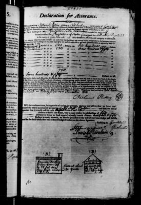 Fire insurance policy from the Mutual Assurance Society of Virginia (MAS) scanned from microfilm. MAS began issuing policies in 1796 and UMW holds microfilm copies of policies created from 1796 to 1867. The Library of Virginia holds the original polices. Computer-generated PDF transcripts are available for download below, listed under Additional Files.