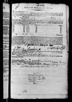 I the underwritten Seth Ligon residing at [home city] in the County of [home county] do hereby declare for Assurance in the Mutual Assurance Society against Fire on Buildings of the State of Virginia. Established 26th December, 1795, agreeable to the several acts of the General Assembly of this state, to wit: