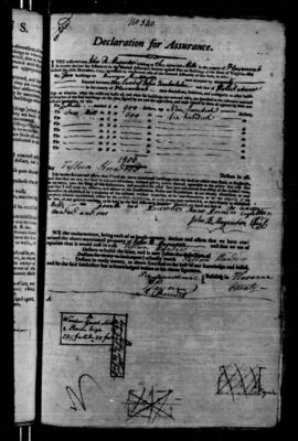 Fire insurance policy from the Mutual Assurance Society of Virginia (MAS) scanned from microfilm. MAS began issuing policies in 1796 and UMW holds microfilm copies of policies created from 1796 to 1867. The Library of Virginia holds the original polices. Computer-generated PDF transcripts are available for download below, listed under Additional Files.