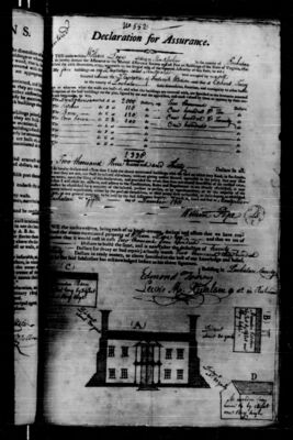 Fire insurance policy from the Mutual Assurance Society of Virginia (MAS) scanned from microfilm. MAS began issuing policies in 1796 and UMW holds microfilm copies of policies created from 1796 to 1867. The Library of Virginia holds the original polices. Computer-generated PDF transcripts are available for download below, listed under Additional Files.