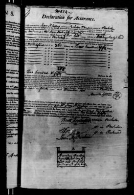 I do hereby declare and affirm that the above mentioned property is not, nor shall be insured elsewhere, without giving notice thereof, agreeably to the policy that may issue in my name, upon the filing of this declaration, and provided the whole sum do not exceed four-fifths of the verified value, and that I will abide by, observe, and adhere to the Constitution, Rules, and Regulations as are already established, or may hereafter be established by a majority of the insured, present in person, or by representatives, at a general Meeting to be agreed upon for the said Assurance Society. Witness my hand and seal at [signing location] the [day number spelled out] day of [month] 1801