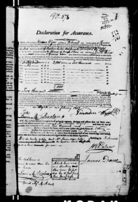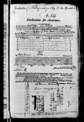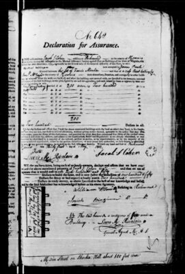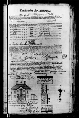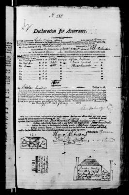 This sub-collection contains insurance policies from volume 15 of the Mutual Assurance Society Policies digital collection. Each item includes a JPEG scanned from microfilm and an automatically generated transcript. To read more about the transcript creation process, visit our transcript documentation. To locate a specific policy based on criteria like policyholder name, address, structure type, etc., we recommend using the UMW Center for Historic Preservation's electronic index. The index results will provide the reel and volume that contain a specific policy.