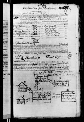 Fire insurance policy from the Mutual Assurance Society of Virginia (MAS) scanned from microfilm. MAS began issuing policies in 1796 and UMW holds microfilm copies of policies created from 1796 to 1867. The Library of Virginia holds the original polices. Computer-generated PDF transcripts are available for download below, listed under Additional Files.