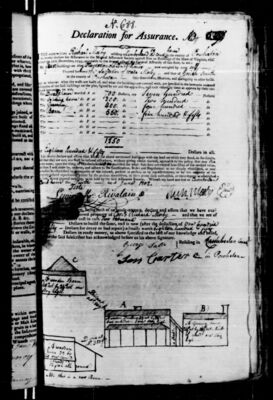 Fire insurance policy from the Mutual Assurance Society of Virginia (MAS) scanned from microfilm. MAS began issuing policies in 1796 and UMW holds microfilm copies of policies created from 1796 to 1867. The Library of Virginia holds the original polices. Computer-generated PDF transcripts are available for download below, listed under Additional Files.