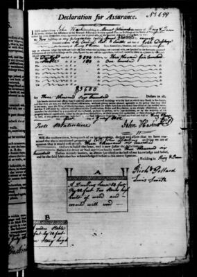 I do hereby declare and affirm that the above mentioned property is not, nor shall be insured elsewhere, without giving notice thereof, agreeably to the policy that may issue in my name, upon the filing of this declaration, and provided the whole sum do not exceed four-fifths of the verified value, and that I will abide by, observe, and adhere to the Constitution, Rules, and Regulations as are already established, or may hereafter be established by a majority of the insured, present in person, or by representatives, at a general Meeting to be agreed upon for the said Assurance Society. Witness my hand and seal at [signing location] the [day number spelled out] day of [month] 1802