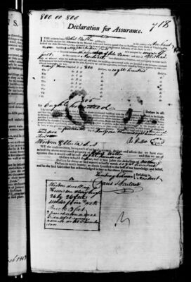 Fire insurance policy from the Mutual Assurance Society of Virginia (MAS) scanned from microfilm. MAS began issuing policies in 1796 and UMW holds microfilm copies of policies created from 1796 to 1867. The Library of Virginia holds the original polices. Computer-generated PDF transcripts are available for download below, listed under Additional Files.
