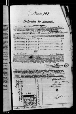 I the underwritten Samuel Parsons residing at [home city] in the County of [home county] do hereby declare for Assurance in the Mutual Assurance Society against Fire on Buildings of the State of Virginia. Established 26th December, 1795, agreeable to the several acts of the General Assembly of this state, to wit: