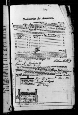 Fire insurance policy from the Mutual Assurance Society of Virginia (MAS) scanned from microfilm. MAS began issuing policies in 1796 and UMW holds microfilm copies of policies created from 1796 to 1867. The Library of Virginia holds the original polices. Computer-generated PDF transcripts are available for download below, listed under Additional Files.