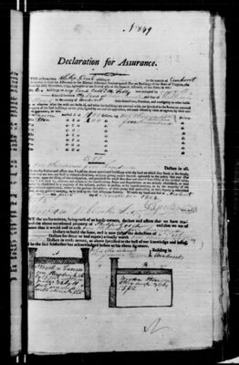 Fire insurance policy from the Mutual Assurance Society of Virginia (MAS) scanned from microfilm. MAS began issuing policies in 1796 and UMW holds microfilm copies of policies created from 1796 to 1867. The Library of Virginia holds the original polices. Computer-generated PDF transcripts are available for download below, listed under Additional Files.