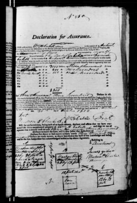 I do hereby declare and affirm that the above mentioned property is not, nor shall be insured elsewhere, without giving notice thereof, agreeably to the policy that may issue in my name, upon the filing of this declaration, and provided the whole sum do not exceed four-fifths of the verified value, and that I will abide by, observe, and adhere to the Constitution, Rules, and Regulations as are already established, or may hereafter be established by a majority of the insured, present in person, or by representatives, at a general Meeting to be agreed upon for the said Assurance Society. Witness my hand and seal at [signing location] the [day number spelled out] day of [month] 1802