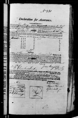 I do hereby declare and affirm that the above mentioned property is not, nor shall be insured elsewhere, without giving notice thereof, agreeably to the policy that may issue in my name, upon the filing of this declaration, and provided the whole sum do not exceed four-fifths of the verified value, and that I will abide by, observe, and adhere to the Constitution, Rules, and Regulations as are already established, or may hereafter be established by a majority of the insured, present in person, or by representatives, at a general Meeting to be agreed upon for the said Assurance Society. Witness my hand and seal at [signing location] the [day number spelled out] day of [month] 1802