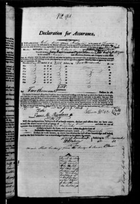 I do hereby declare and affirm that the above mentioned property is not, nor shall be insured elsewhere, without giving notice thereof, agreeably to the policy that may issue in my name, upon the filing of this declaration, and provided the whole sum do not exceed four-fifths of the verified value, and that I will abide by, observe, and adhere to the Constitution, Rules, and Regulations as are already established, or may hereafter be established by a majority of the insured, present in person, or by representatives, at a general Meeting to be agreed upon for the said Assurance Society. Witness my hand and seal at [signing location] the [day number spelled out] day of [month] 1803