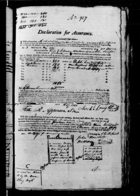 I do hereby declare and affirm that the above mentioned property is not, nor shall be insured elsewhere, without giving notice thereof, agreeably to the policy that may issue in my name, upon the filing of this declaration, and provided the whole sum do not exceed four-fifths of the verified value, and that I will abide by, observe, and adhere to the Constitution, Rules, and Regulations as are already established, or may hereafter be established by a majority of the insured, present in person, or by representatives, at a general Meeting to be agreed upon for the said Assurance Society. Witness my hand and seal at [signing location] the [day number spelled out] day of [month] 1803