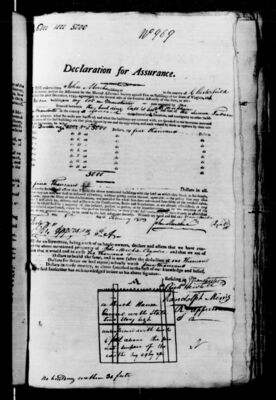 I do hereby declare and affirm that the above mentioned property is not, nor shall be insured elsewhere, without giving notice thereof, agreeably to the policy that may issue in my name, upon the filing of this declaration, and provided the whole sum do not exceed four-fifths of the verified value, and that I will abide by, observe, and adhere to the Constitution, Rules, and Regulations as are already established, or may hereafter be established by a majority of the insured, present in person, or by representatives, at a general Meeting to be agreed upon for the said Assurance Society. Witness my hand and seal at [signing location] the [day number spelled out] day of [month] 1803