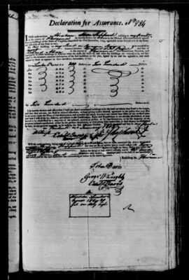 I do hereby declare and affirm that the above mentioned property is not, nor shall be insured elsewhere, without giving notice thereof, agreeably to the policy that may issue in my name, upon the filing of this declaration, and provided the whole sum do not exceed four-fifths of the verified value, and that I will abide by, observe, and adhere to the Constitution, Rules, and Regulations as are already established, or may hereafter be established by a majority of the insured, present in person, or by representatives, at a general Meeting to be agreed upon for the said Assurance Society. Witness my hand and seal at [signing location] the [day number spelled out] day of [month] 1803