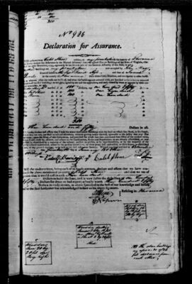 Fire insurance policy from the Mutual Assurance Society of Virginia (MAS) scanned from microfilm. MAS began issuing policies in 1796 and UMW holds microfilm copies of policies created from 1796 to 1867. The Library of Virginia holds the original polices. Computer-generated PDF transcripts are available for download below, listed under Additional Files.